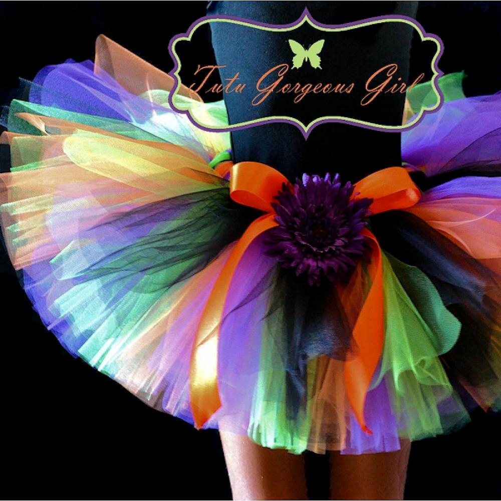 Girls Halloween Witch Tutu / Women's Witch Tutu / Black Orange Green Purple Tutu