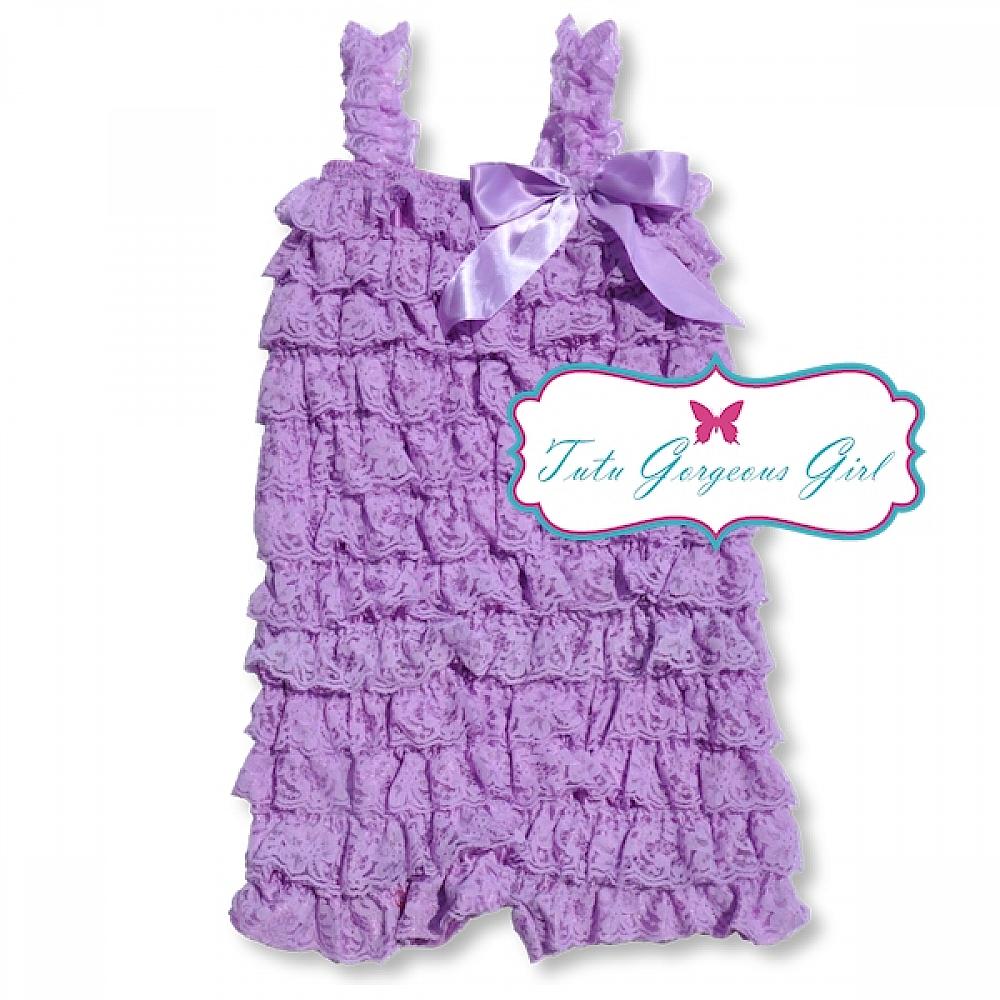 The lavender ruffled lace petti romper is perfect for pairing with tutus, petti skirts or wearing alone. A fabulous choice for portraits, birthday girls, special occasions or any day in between. Each romper is made with many soft layers of lace, and includes straps and a satin bow.