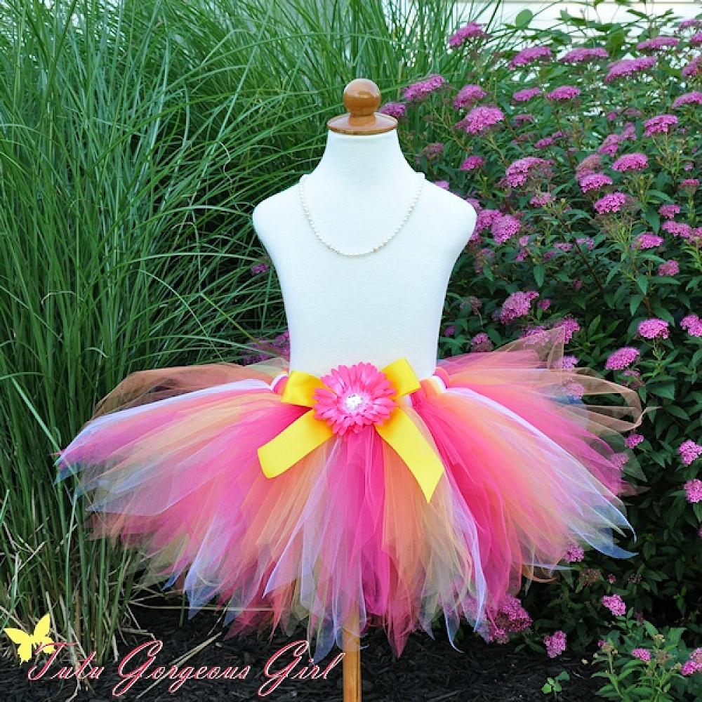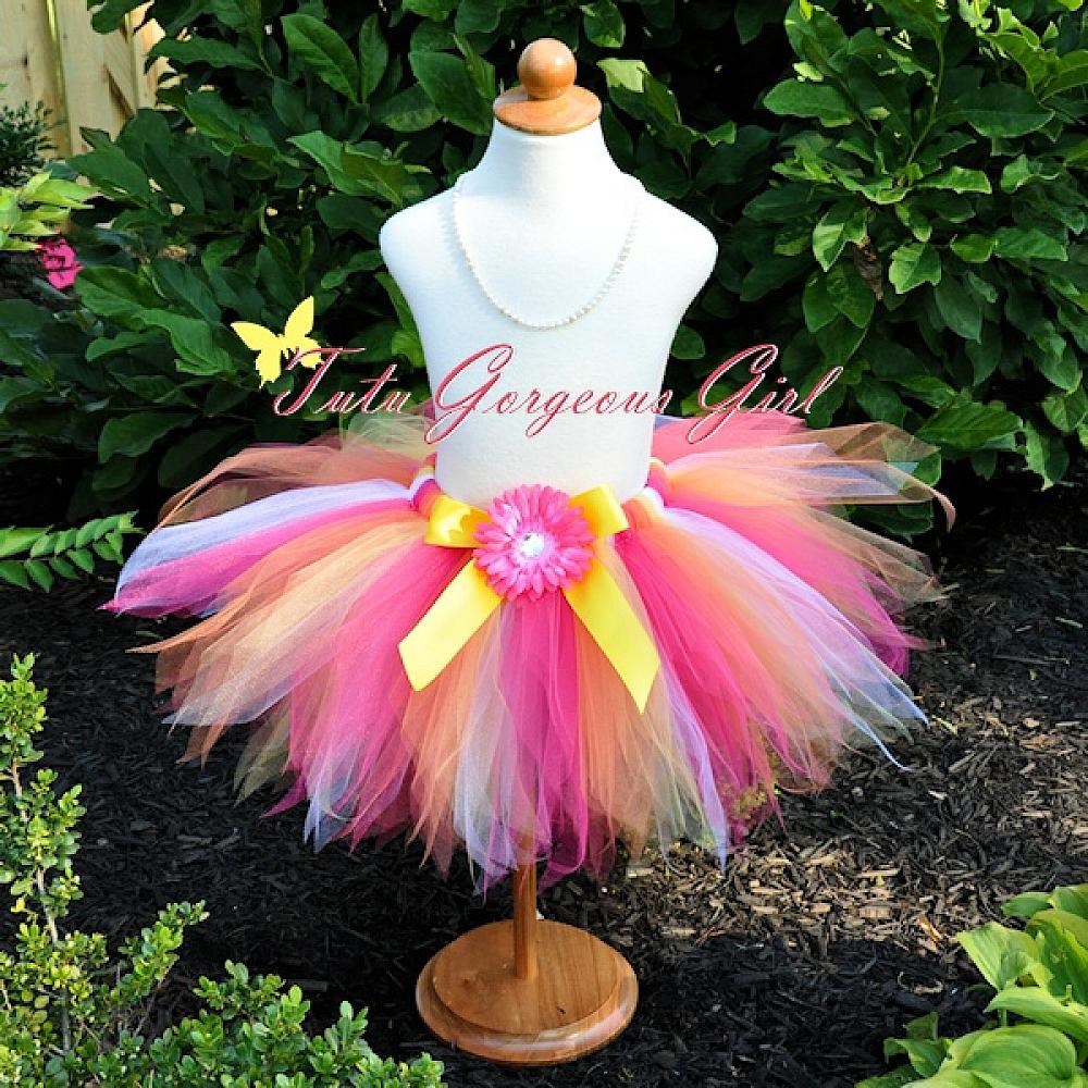 Coral Orange Yellow White Tutu / Summer Portrait Tutu / Summer Birthday Tutu