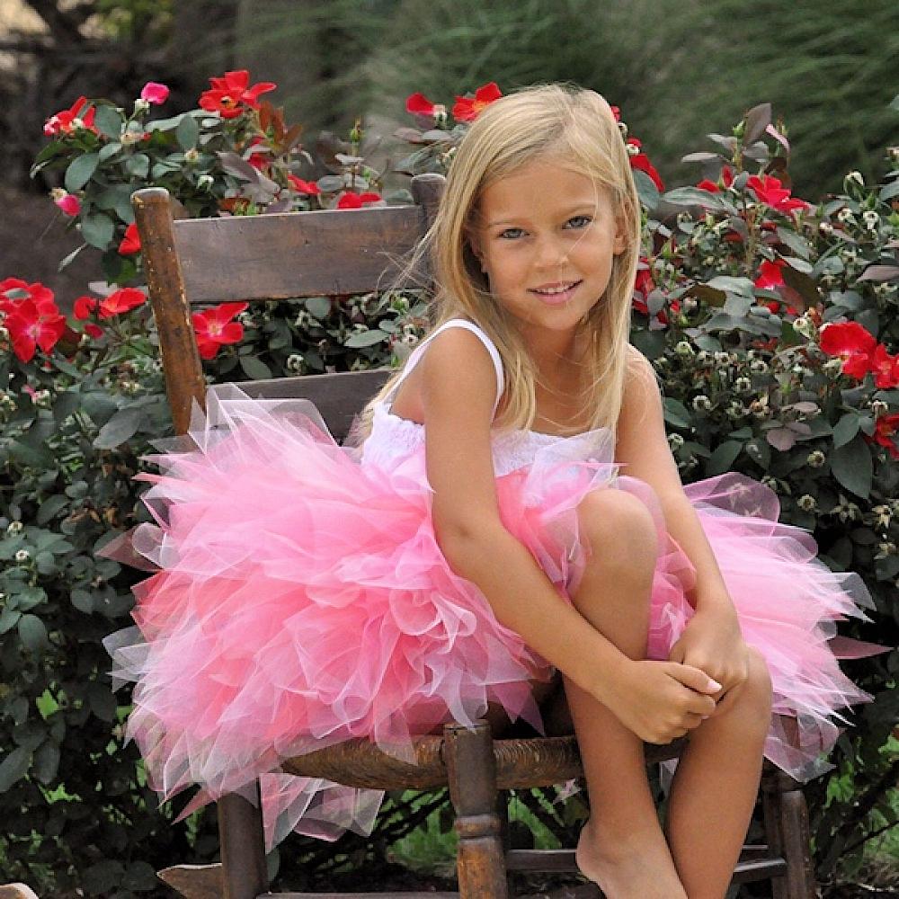 A perfect tutu for the girl who loves pink! Pink, Shocking Pink, Coral and White tulle create a gorgeous tutu that will have your little princess blushing from compliments. This tutu is perfect for Valentine's Day, portraits, flower girls and dance recitals. Tutu includes a satin bow. Flower clip and crochet headband can be added to your purchase below.