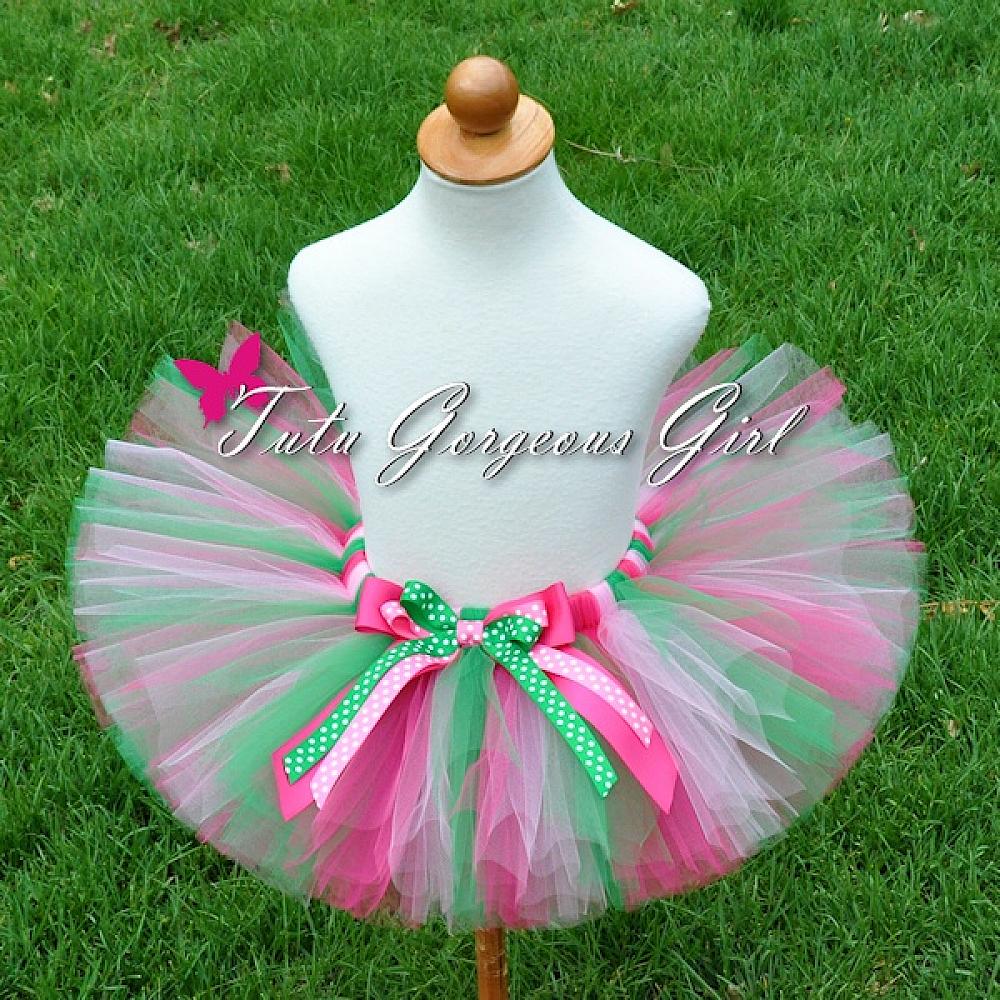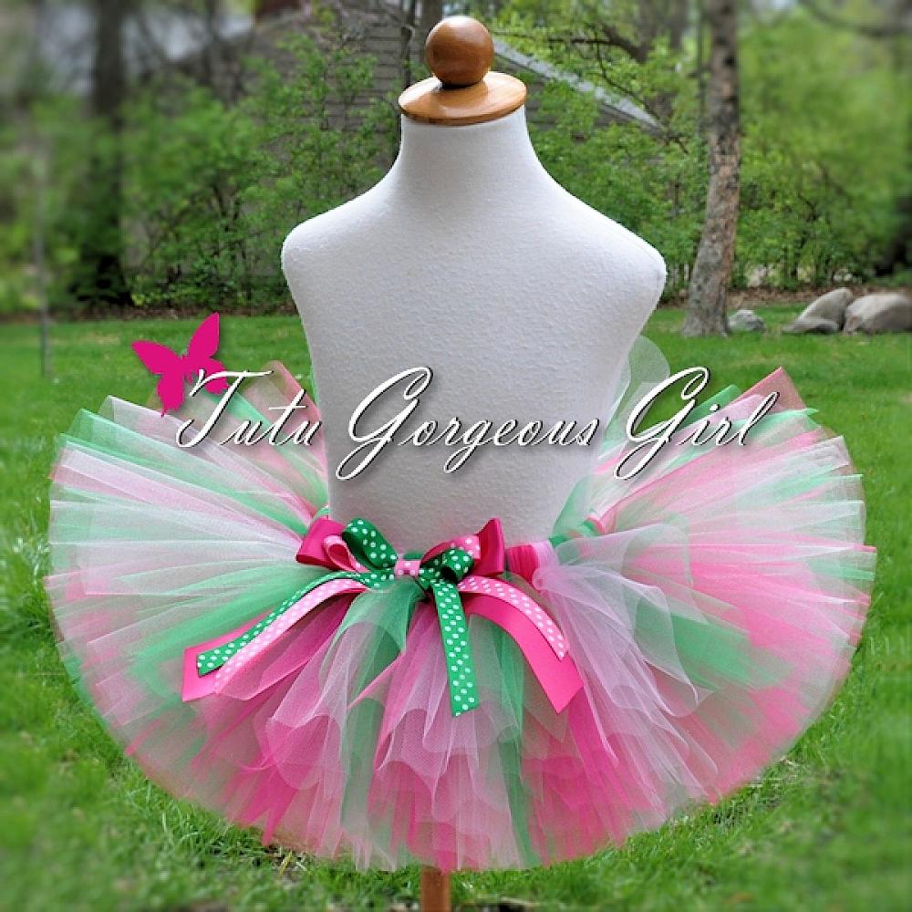 Girls Strawberry Birthday Tutu / Hot Pink Green Tutu / Baby to Adult Tutu Sizes