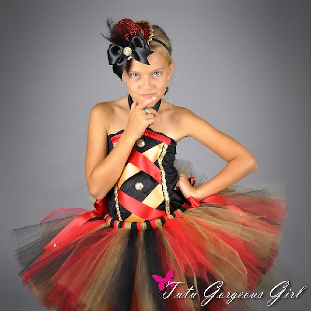 Circus Ring Master Costume / Red Black Gold Circus Tutu, Top and Mini Top Hat