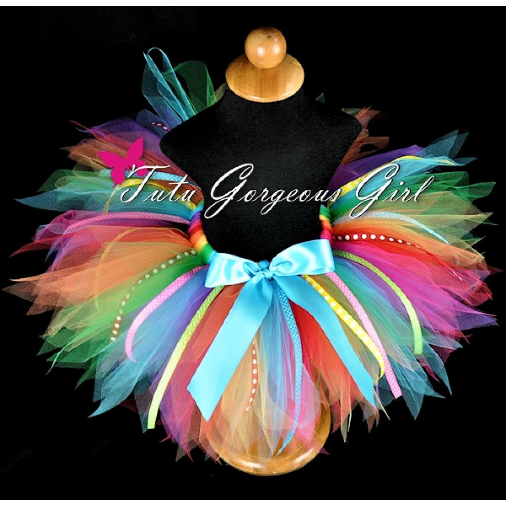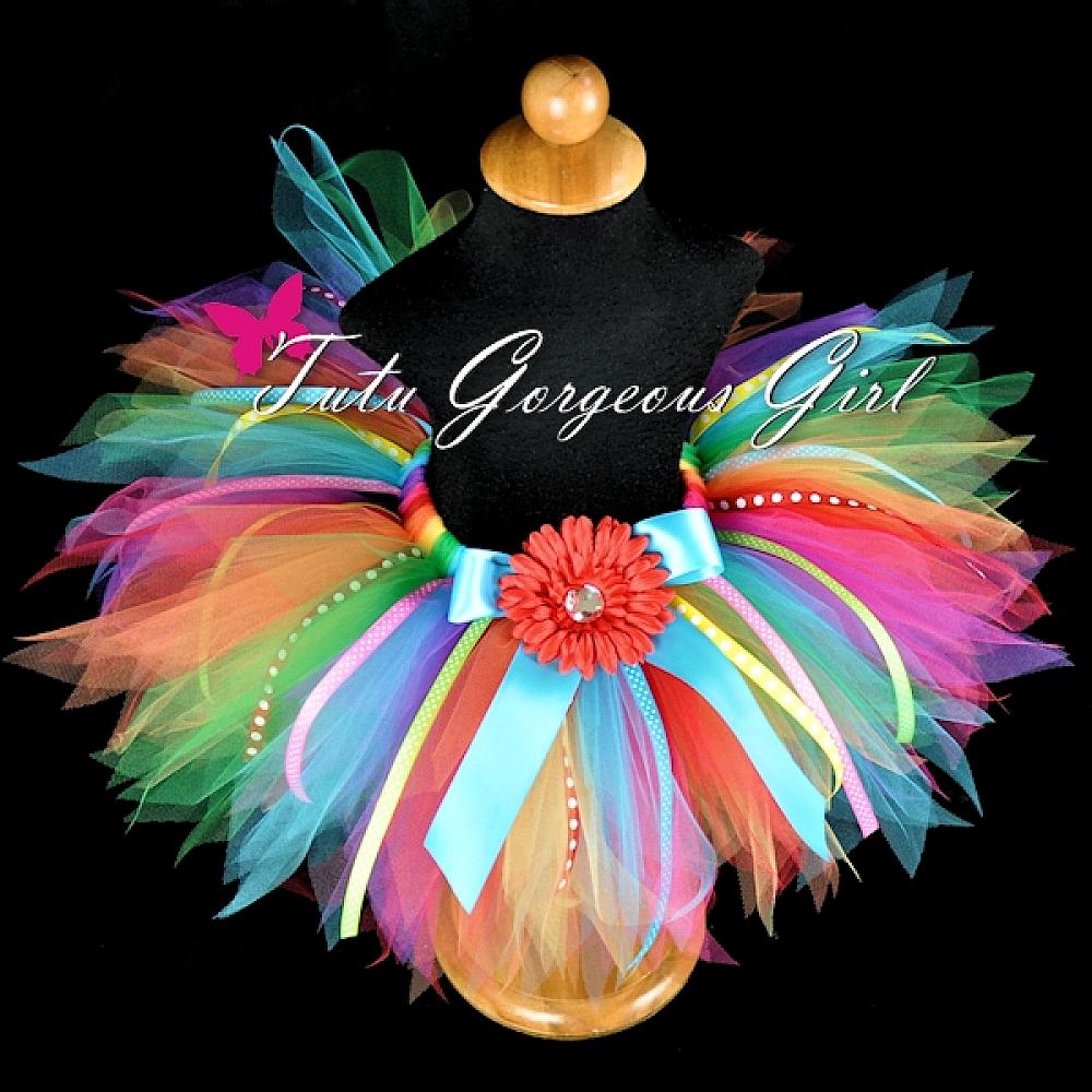 Rainbow Birthday Tutu with Ribbons / Girl's Birthday Party Tutu