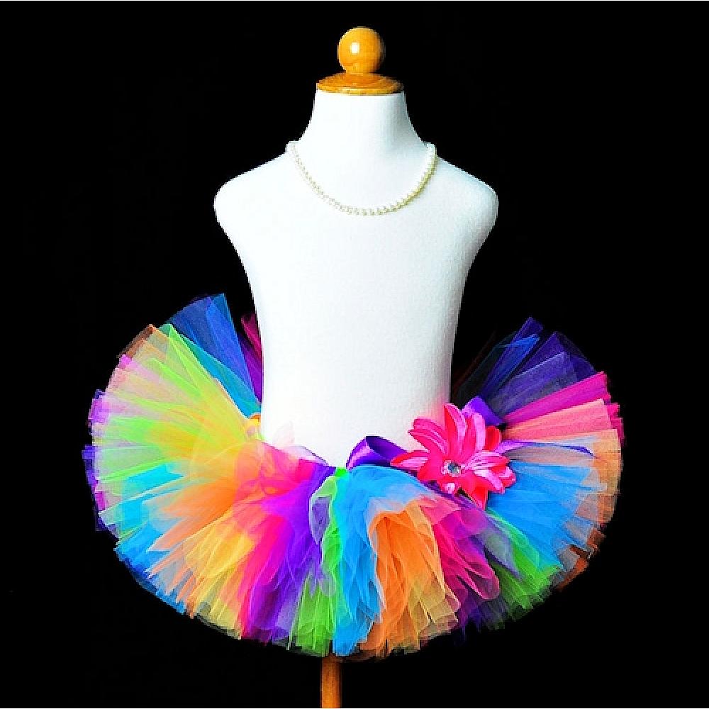 The Candy Rainbow tutu showcases all the brightest colors of the rainbow! This colorful and fun tutu is perfect for a rainbow themed birthday party, dance tutu, Halloween clown costume or photo prop.