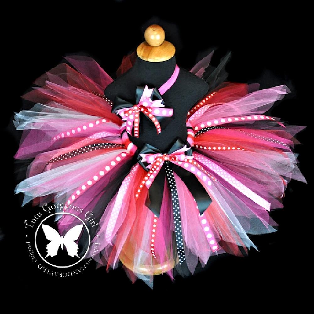 Valentine's Day Tutu / Red Pink and Black Tutu with Polka Dot Ribbons