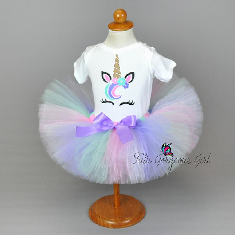 Baby girl's first birthday unicorn bodysuit is made with light pink, lavender, mint, gold and black heat press vinyl. Perfect for unicorn first birthday portraits, cake smash outfit, or birthday gift. Tutu and unicorn headpiece can be purchased separately (see below for links). Color substitutions are welcome. Please contact us to discuss color options. As an additional option a name can be added below the unicorn image. Please leave the correct spelling of the name in your order notes along with the color you would like the name written.