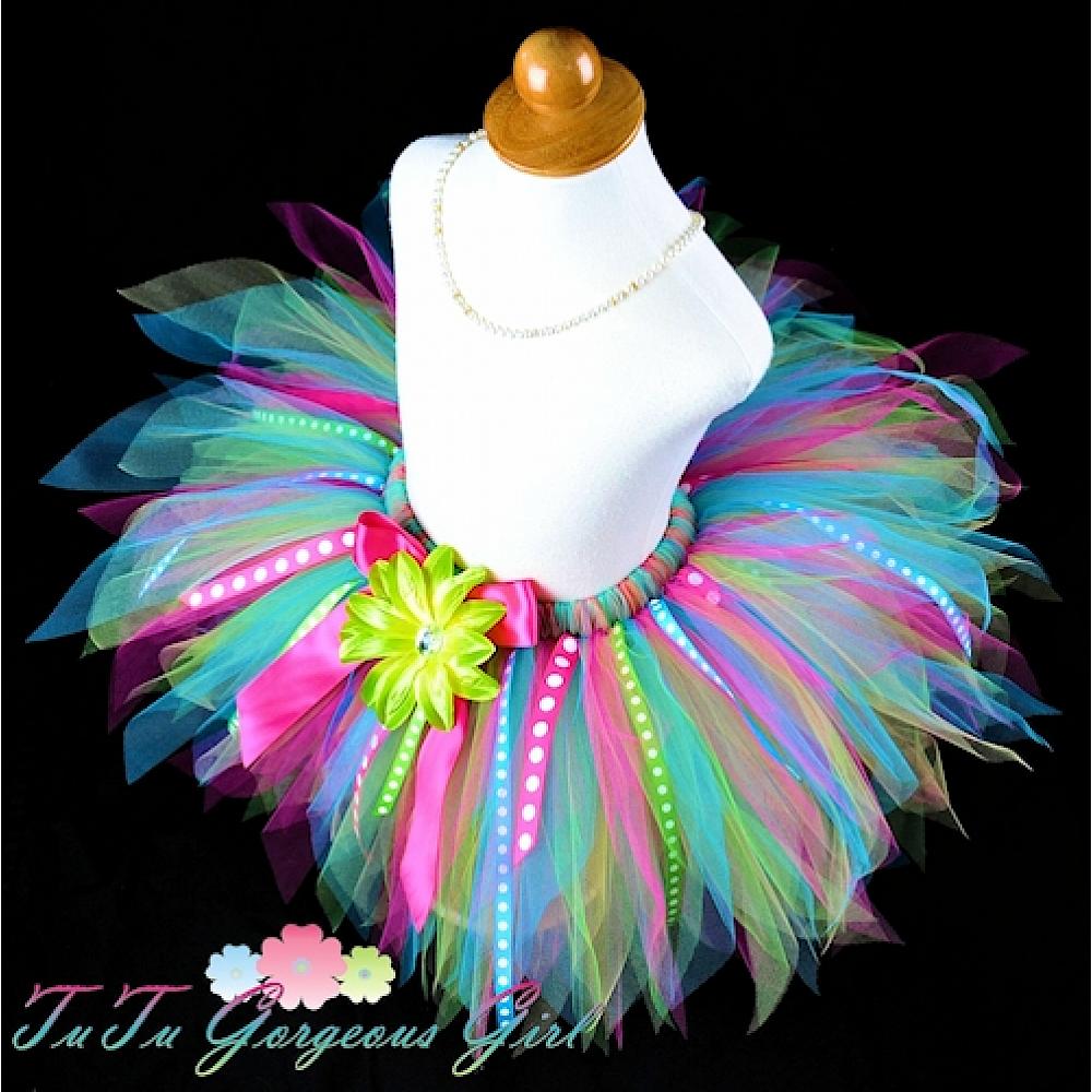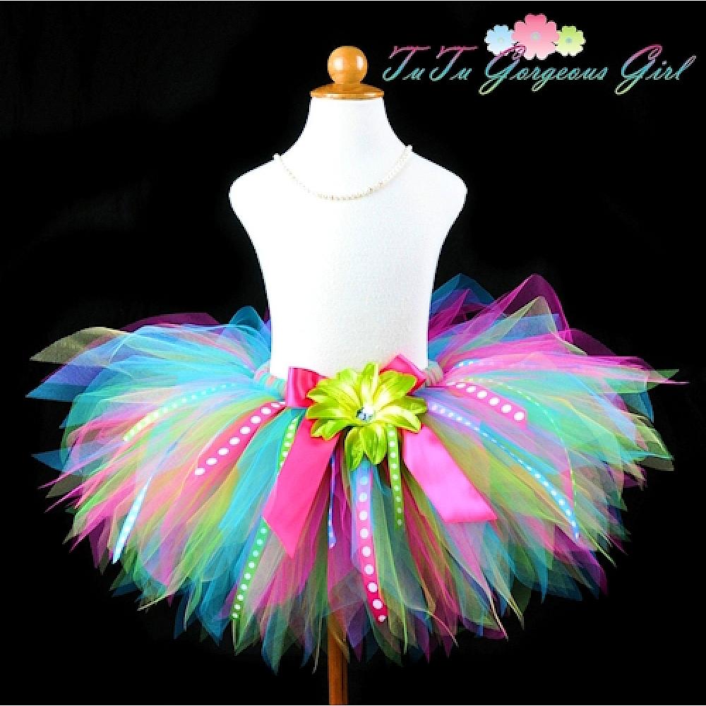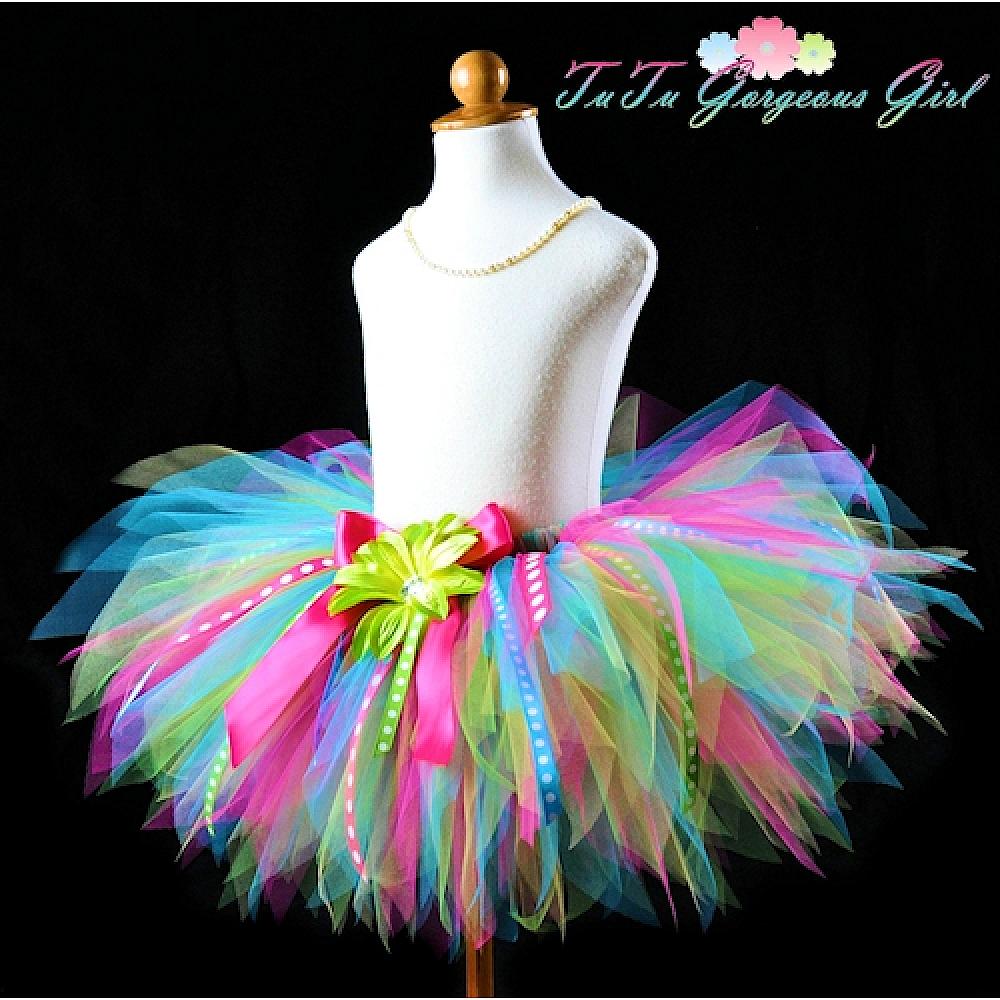 Colorful Birthday Ribbon Tutu / Hot Pink Green Yellow Turquoise Birthday Tutu