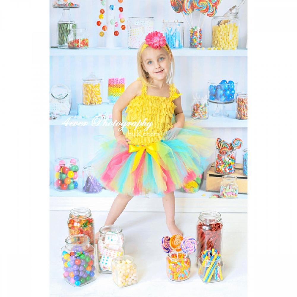 Baby girl's yellow ruffle lace petti romper with straps and satin bow. All rompers stretch to fit snug. Please select the next size up if unsure.